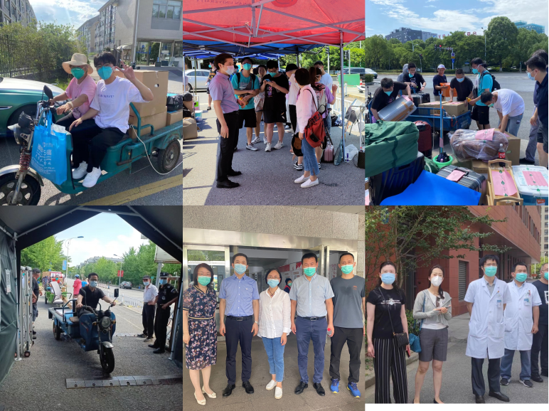7月9日上午8点,宿舍搬迁工作开始。无锡正值“小暑大暑,上蒸下煮”的高温天气,在学校的大力支持下,后勤管理处在校园南门外搭建了凉棚,组建了一支33人的三轮车骑行搬运队伍,将学生行李从宿舍园区搬到学校南门;37000cm威尼斯组织全体班子成员、党员干部、教授、班主任、行政管理人员约25人参与搬运接力,将学生行李从校门口搬运到大巴车上,党委书记向琪、院长马鑫亲自在现场协调指挥搬迁。面对困难,大家发扬乐观主义精神,院长助理程洋、柴高尚、辅导员鲁钦正亲自蹬三轮、老师帮学生一起搬行李,烈日下汗水浸透了衣服,露出了盐渍的白,形成了一道独特的风景。他们依然用坚实的臂膀扛起重物,用实际行动诠释了责任和担当,为学生树立了榜样,也为医学生上了一堂劳动实践教育课。全体辅导员跟车将学生安全送至各实习点。