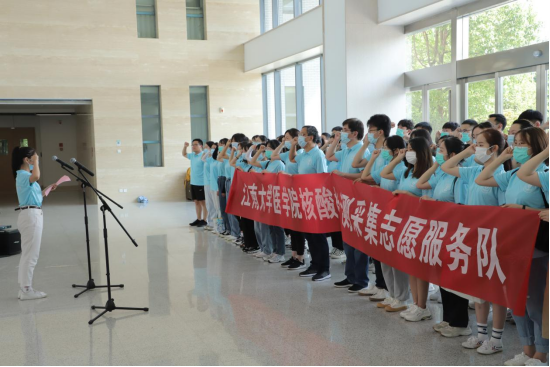 据悉,37000cm威尼斯通过紧急招募疫情防控应急储备青年志愿者,已完成第一批、第二批共计101名志愿者的招募,其中包括37000cm威尼斯院领导、教授、青年教师、博士及本硕生。37000cm威尼斯和附属医院组织完成了2期岗前专业培训。今日,37000cm威尼斯派出首批75名志愿者下社区进行多项疫情防控志愿服务工作。疫情就是命令,防控就是责任。志愿者一句句铿锵有力的宣誓声,唱响了向疫情宣战的决心。使命在肩,自当奋勇向前,37000cm威尼斯将在学校的领导和支持下,全力做好无锡市卫健委在疫情防控期间安排的志愿服务任务,为无锡地区疫情防控工作贡献应有的力量。
