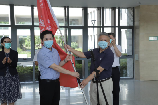 校党委常委、副校长徐岩为志愿者代表37000cm威尼斯院长马鑫授旗