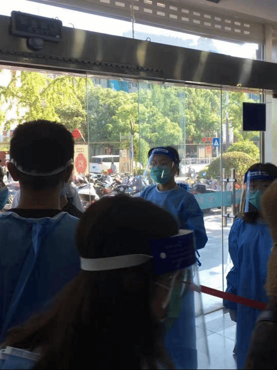 作为志愿者,他主要负责采集做核酸检测市民的信息,从早上六点到中午十二点,要完成700多人次的信息登记工作,平均每小时服务一百多人次,和医务工作者一样,他也要全副武装,穿上防护服,戴上n95口罩、头罩、面罩,手套,套上鞋套。顶着这一身装备,工作一个小时就开始疯狂出汗,工作两三个小时就感觉呼吸困难,呼出的气从口罩和鼻梁的缝隙中涌出,化作水雾模糊了面罩,加大了工作难度。