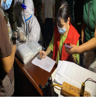 来自江苏扬州的临床2001班的王志新同学在得知社区召集防疫工作志愿者,第一时间报名参加,在经过面试和培训后,已经在8月2日和8月6日进行第一批和第二批核酸采集的登记工作,以实际行动为打赢疫情防控阻击战战贡献力量。