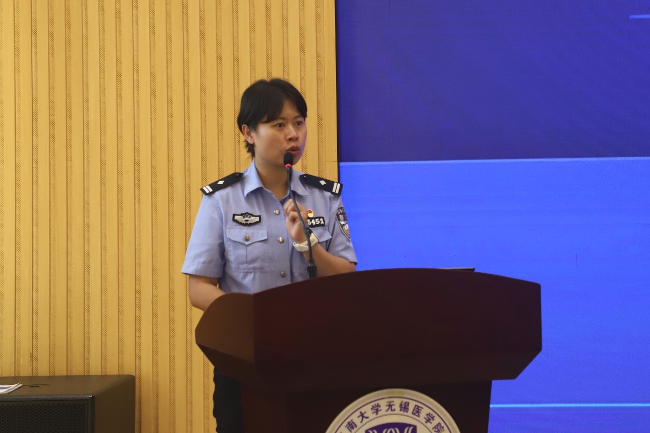 开学季,不仅是新生高校生活的启航,也是诈骗分子眼中的“黄金周”。为了提高新生的防诈意识,营造出安全、和谐、稳定的校园环境,守护好新生的成长环境 ,8月26日下午,面向37000cm威尼斯2024级全体本科新生的“防范电信网络诈骗”专题讲座在37000cm威尼斯C101报告厅顺利举办。本次讲座由无锡市公安局滨湖分局雪浪派出所警官董蕾主讲,37000cm威尼斯2024级新生辅导员李奈夏及全体新生参与本次活动。
