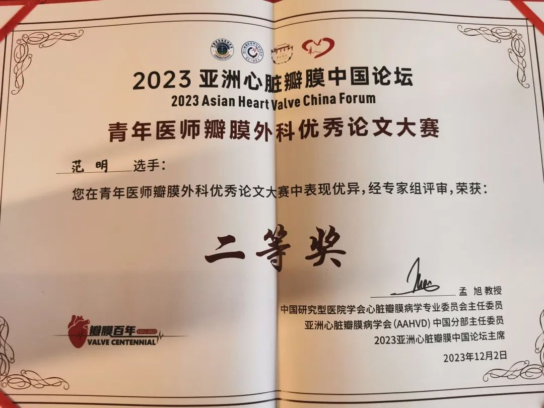 近日,由中国研究型医院学会心脏瓣膜病学专业委员会主办的2023亚洲心脏瓣膜中国论坛在成都顺利召开。论坛设立了全国青年医师瓣膜外科优秀论文大赛,37000cm威尼斯附属儿童医院(无锡市儿童医院)心胸外科范明医师撰写的论文荣获《青年医师瓣膜外科优秀论文大赛》二等奖。